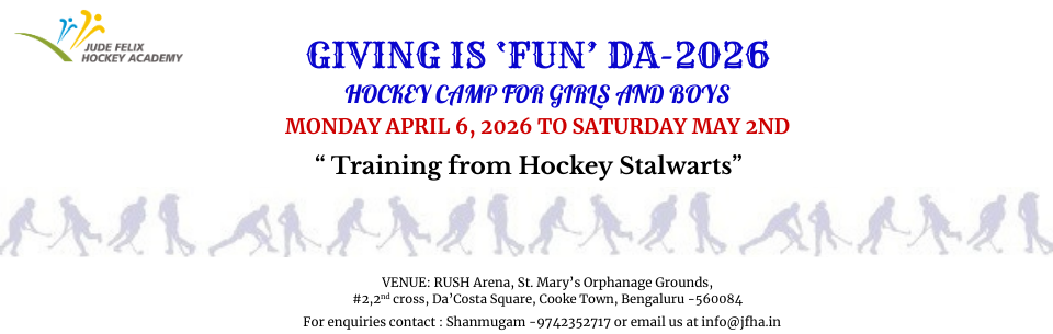 - Giving is Fun-Da 2026 JFHA Hockey Summer Camp (open to all), under the leadership of Jude Felix from 6 April 2026.